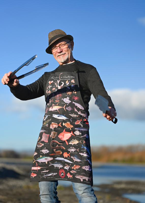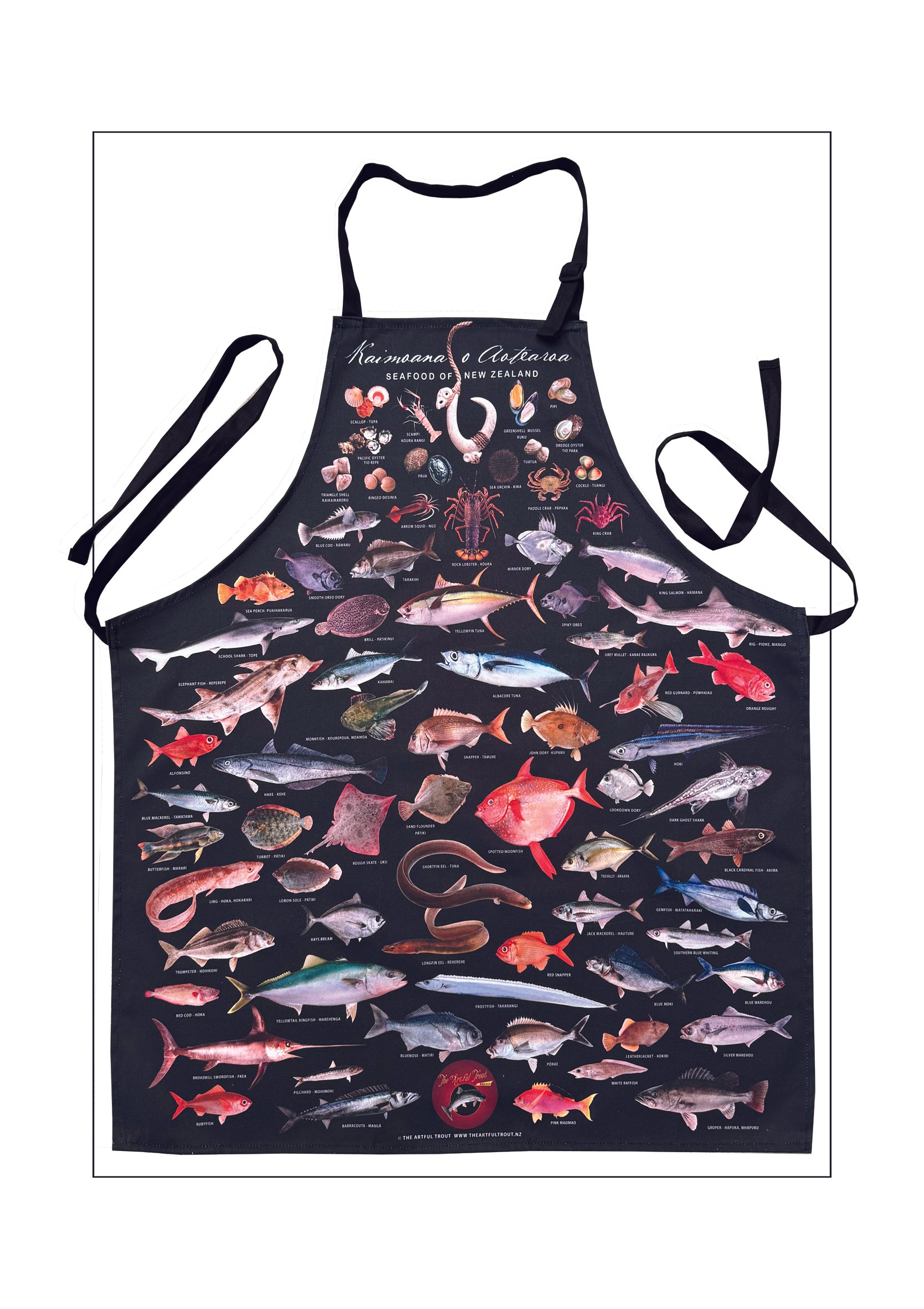 Features the iconic New Zealand seafood poster image, made of 100% cotton, has an adjustable strap.